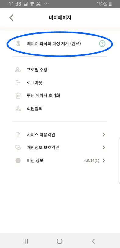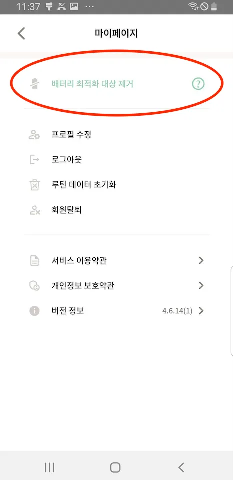 루빗 앱 내에서 “배터리 최적화 대상 제거"를 찾을 수 없나요?