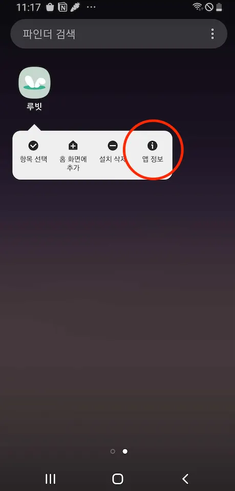 1. 앱을 꾹 눌러 앱 정보