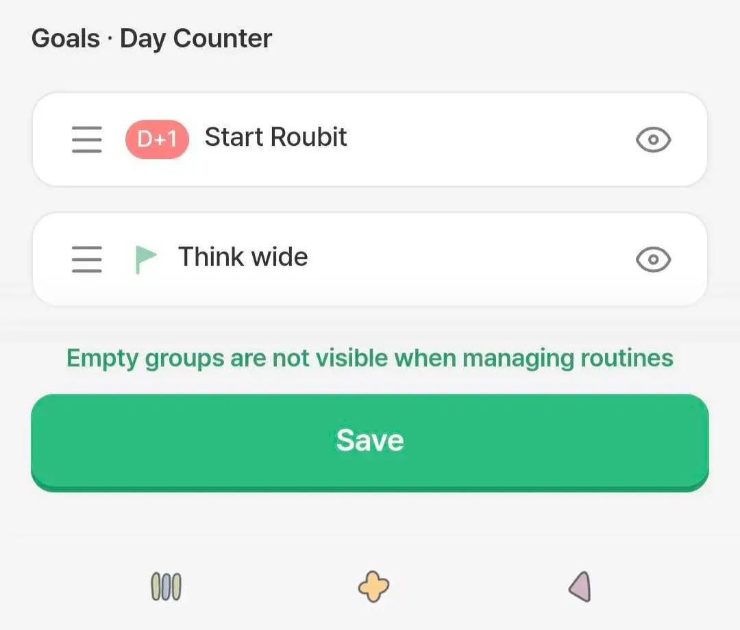 您可以透過點擊「目標·天數計數器」選單最左側的眼睛圖示,來隱藏或顯示內容