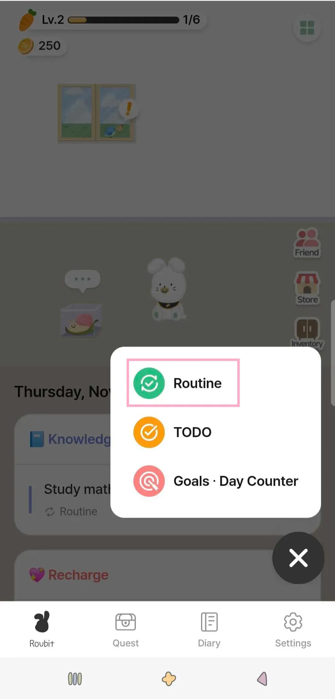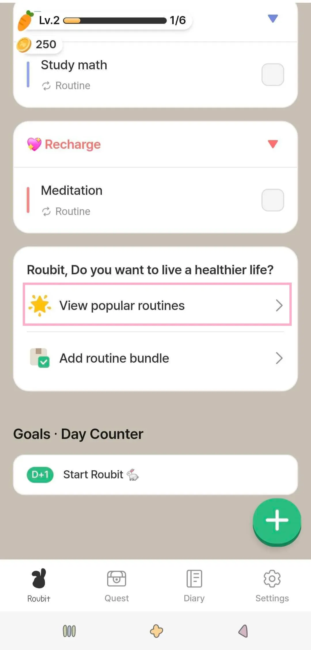 1) Navigate to the "Roubit" tab and select "Routine" by pressing the + button.