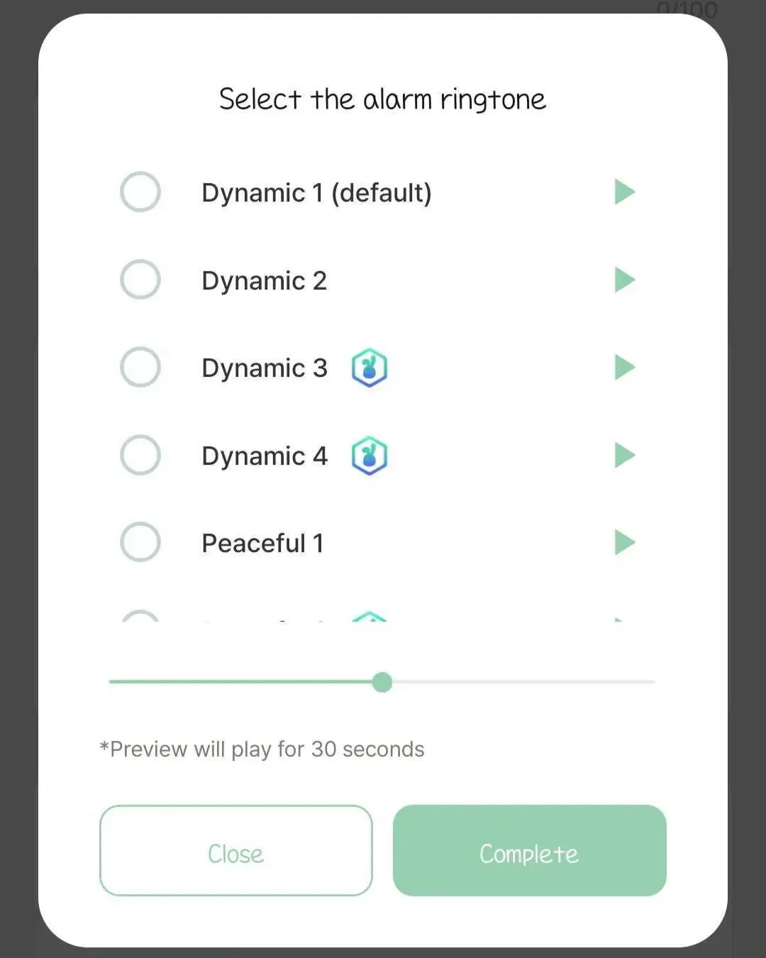 You can change the alarm sound by pressing the gray button.