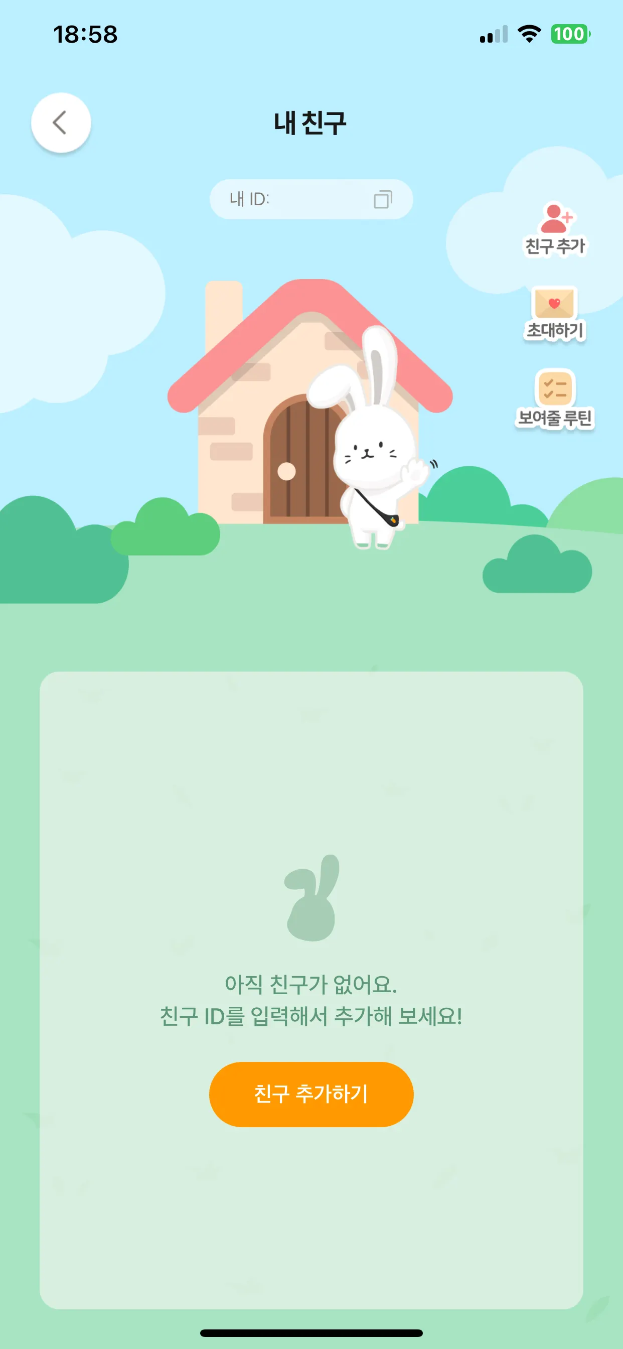친구 추가를 눌러 친구의 ID를 입력해 주세요