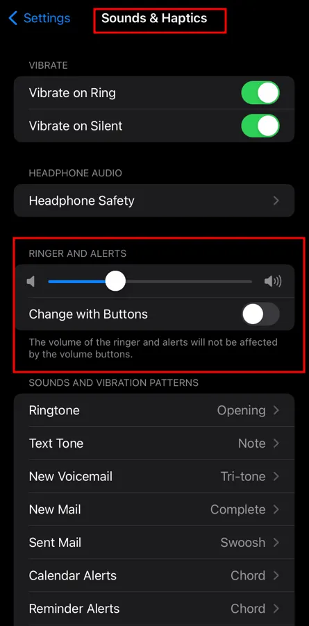 [Setting] > [Sound & Haptics] > [RINGER AND ALERTS]