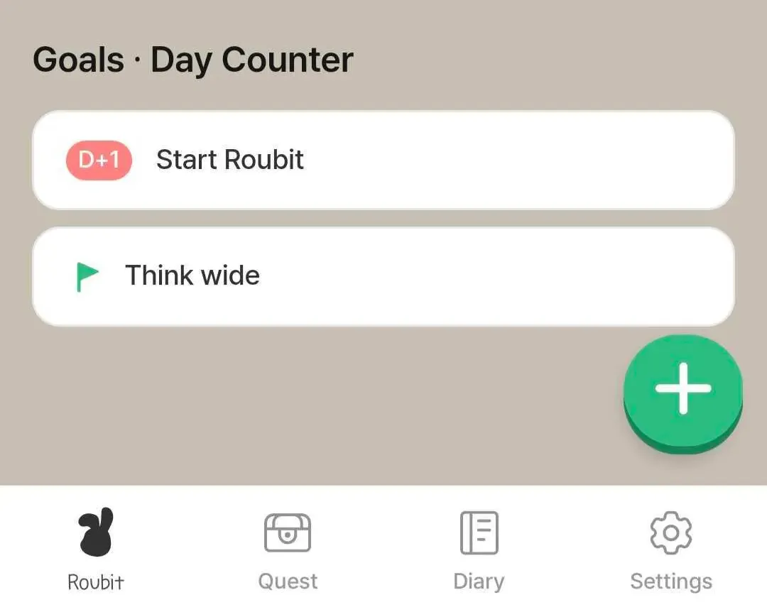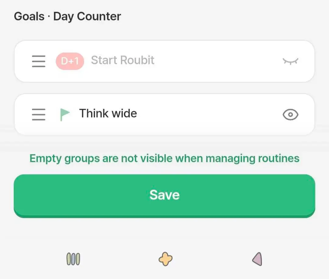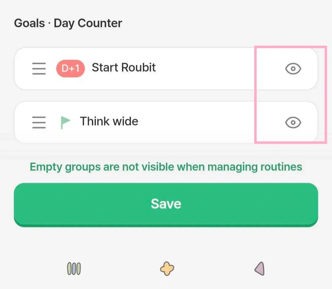 The hidden goals·day counters will not be visible in the Roubit tab and widget