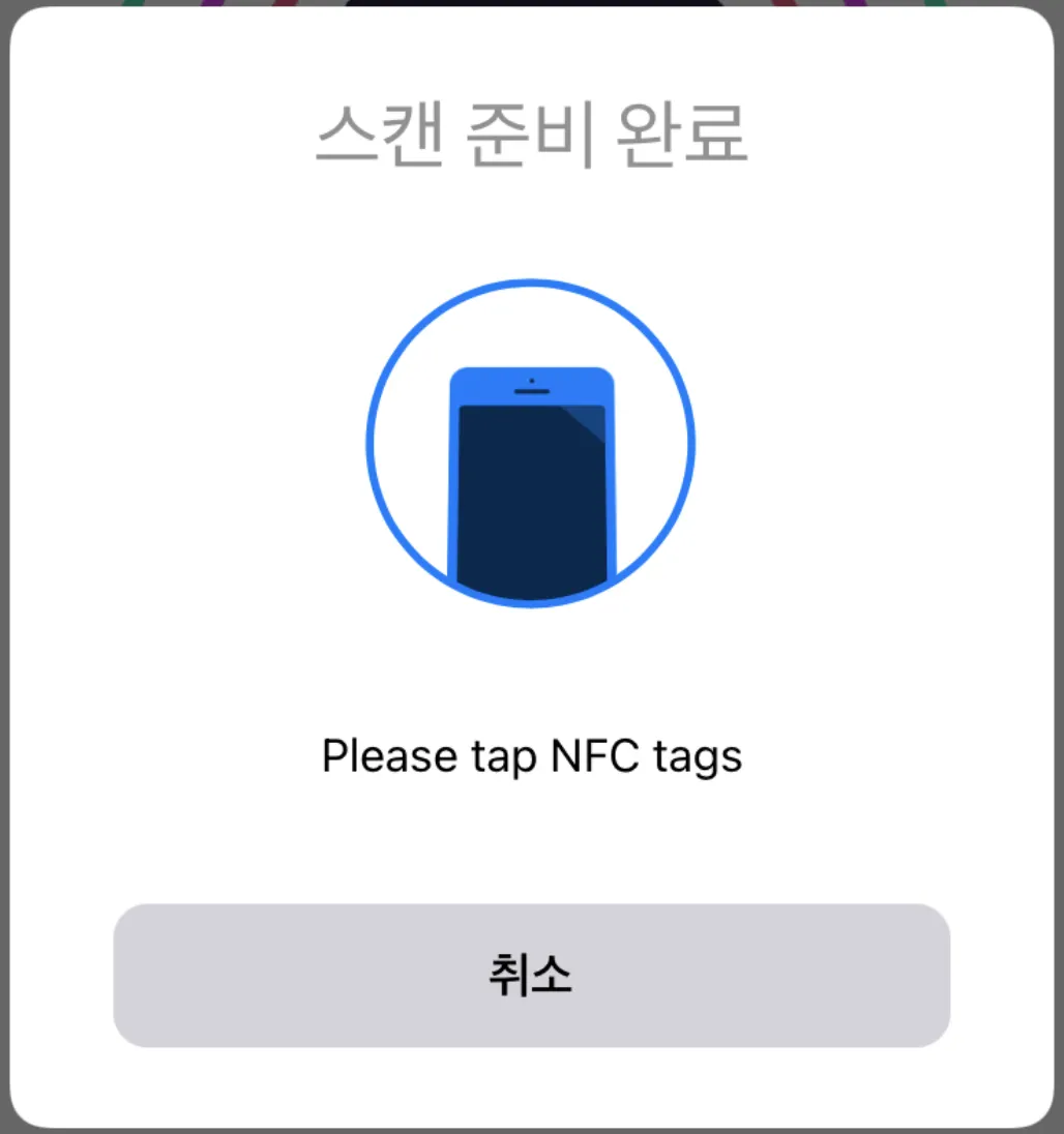 Case 2. NFC 등록 화면(Step1)에서 (*)태그 팝업이 띄워진 후, NFC를 태그해도 아무런 변화가 없어요.