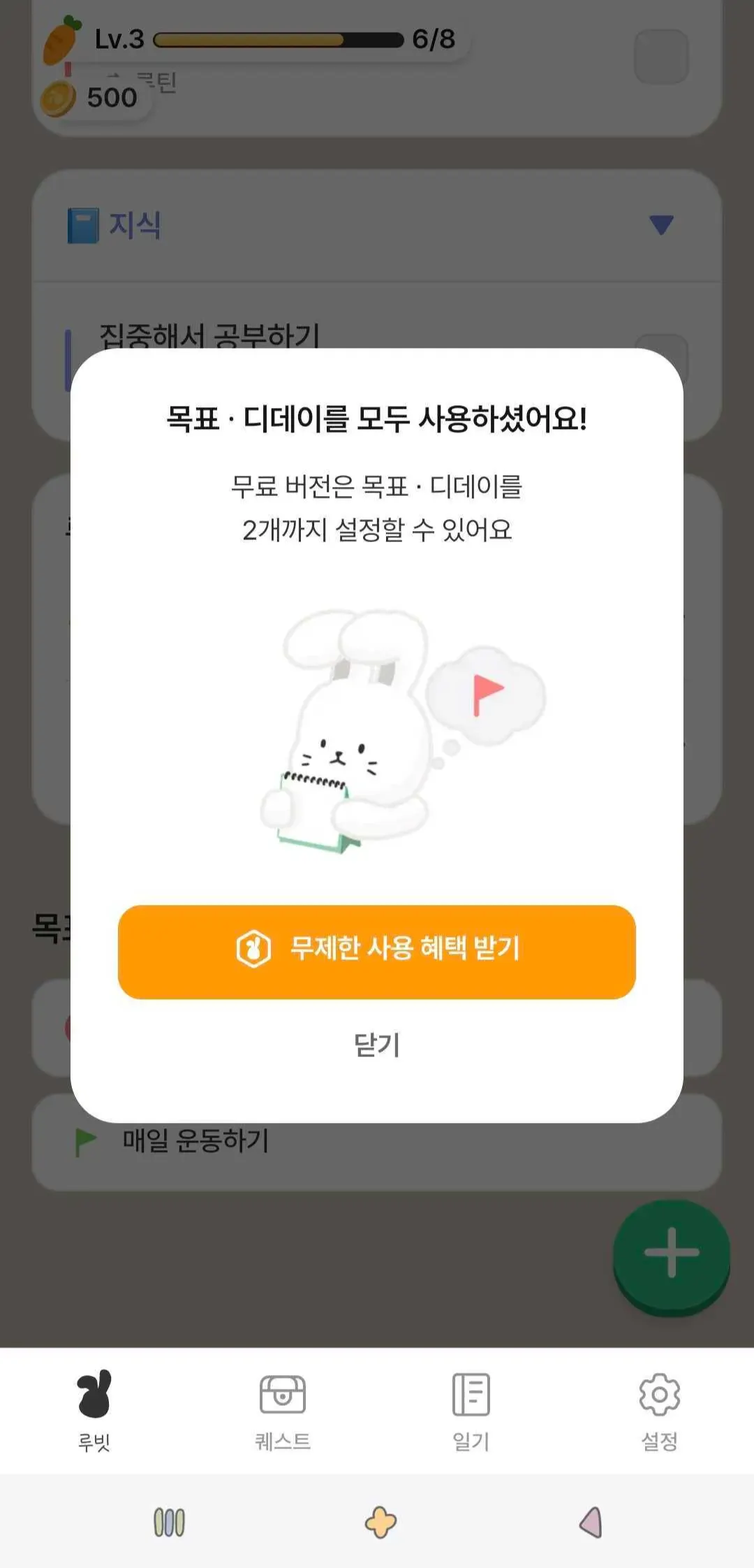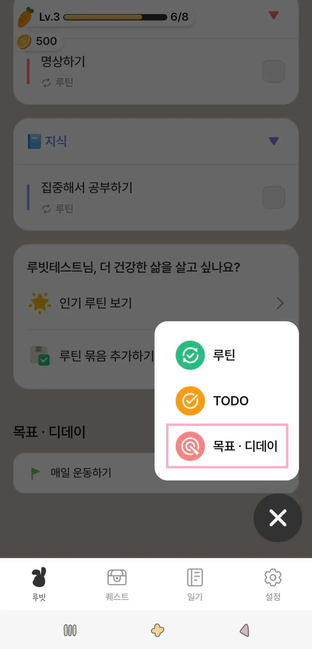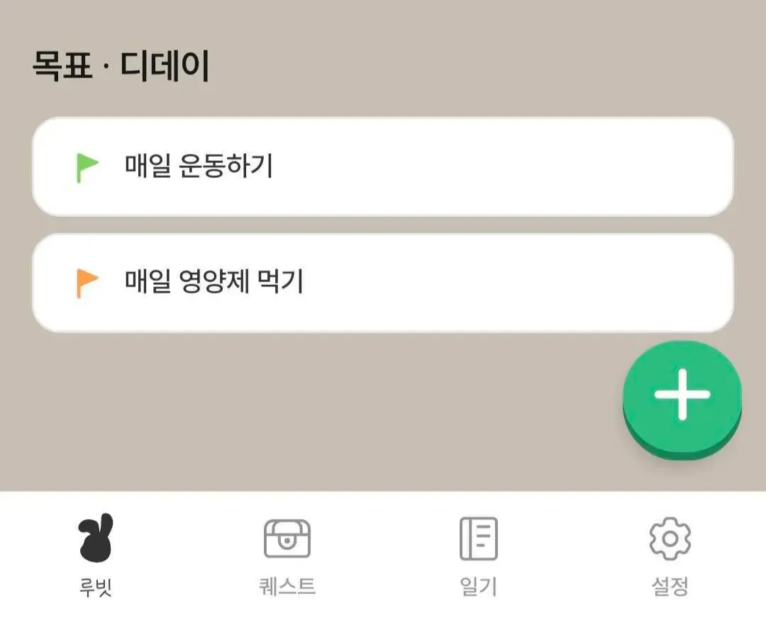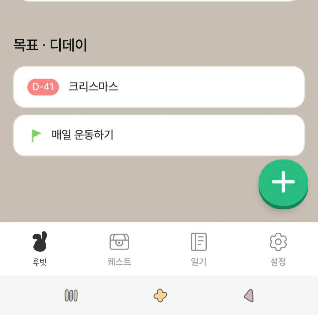 루빗 탭의 + 버튼을 눌러 만들거나, 기존 목표 · 디데이를 눌러 편집할 수 있어요!