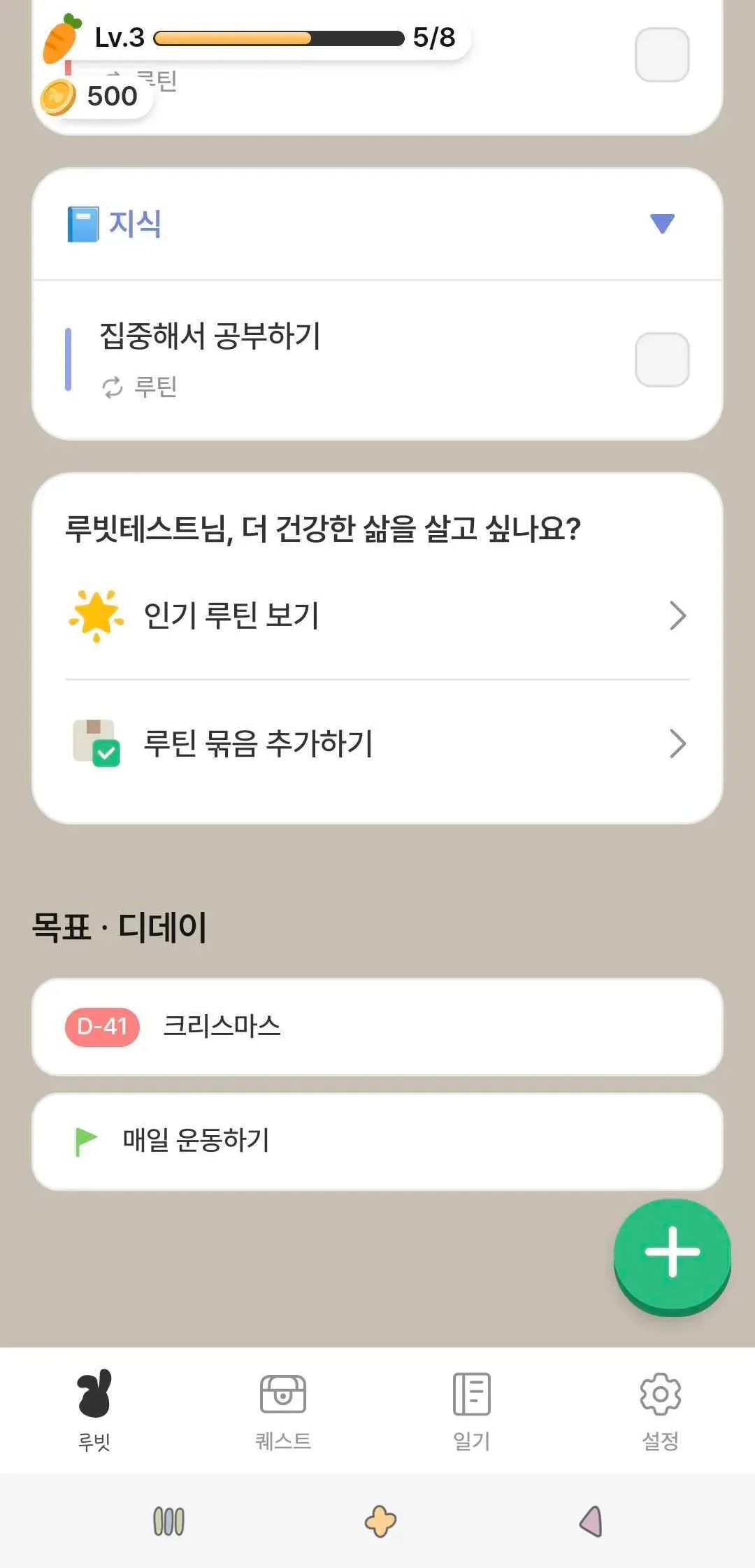 루틴 탭에서 + 버튼을 눌러 목표 · 디데이를 눌러주세요!