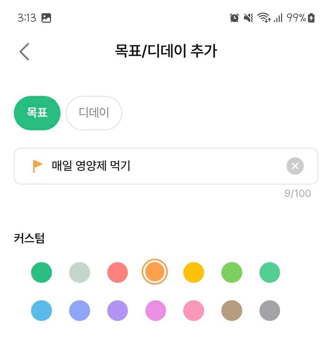 목표 탭에서 나만의 목표를 입력하고, 원하는 색상을 선택해 주세요