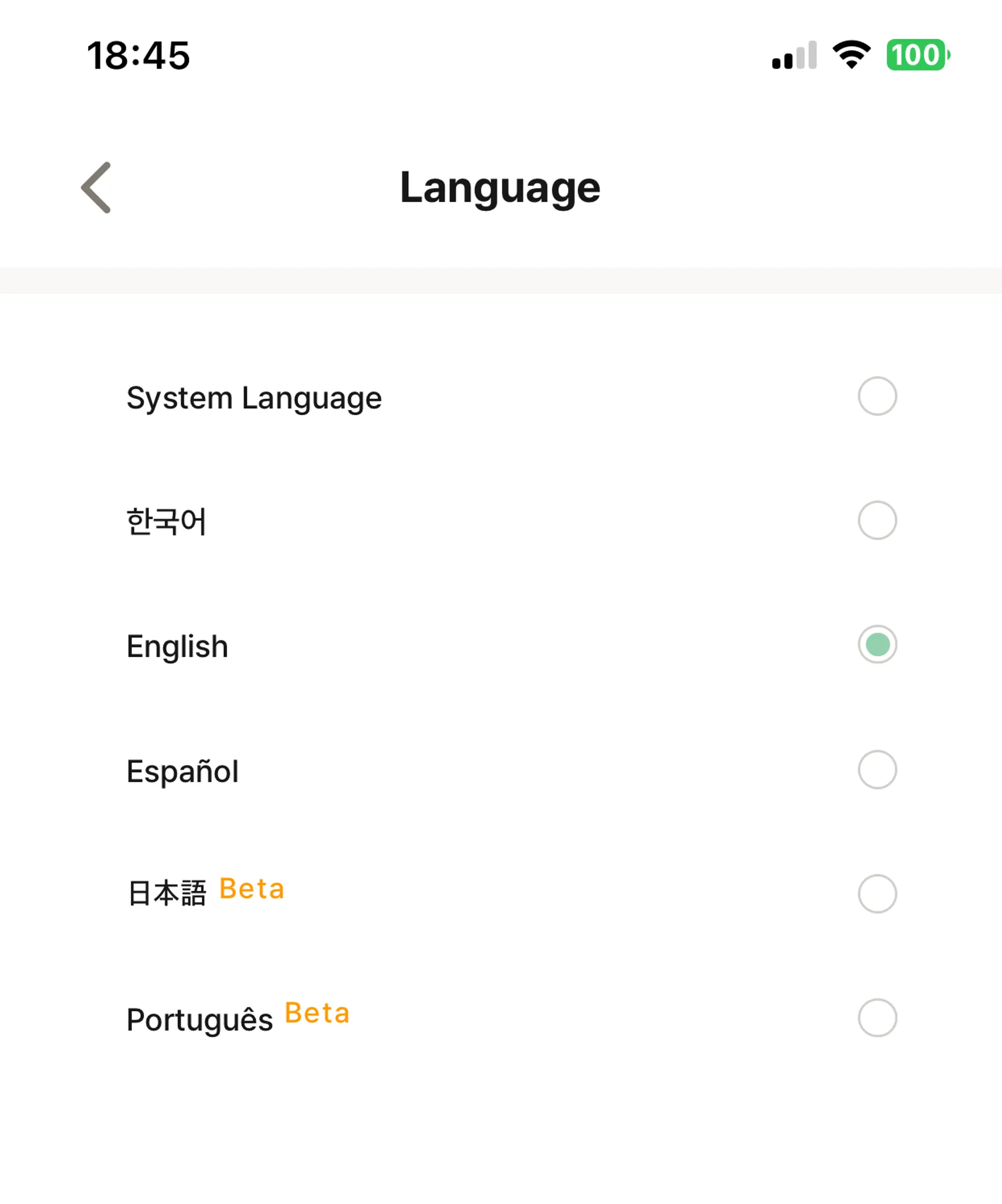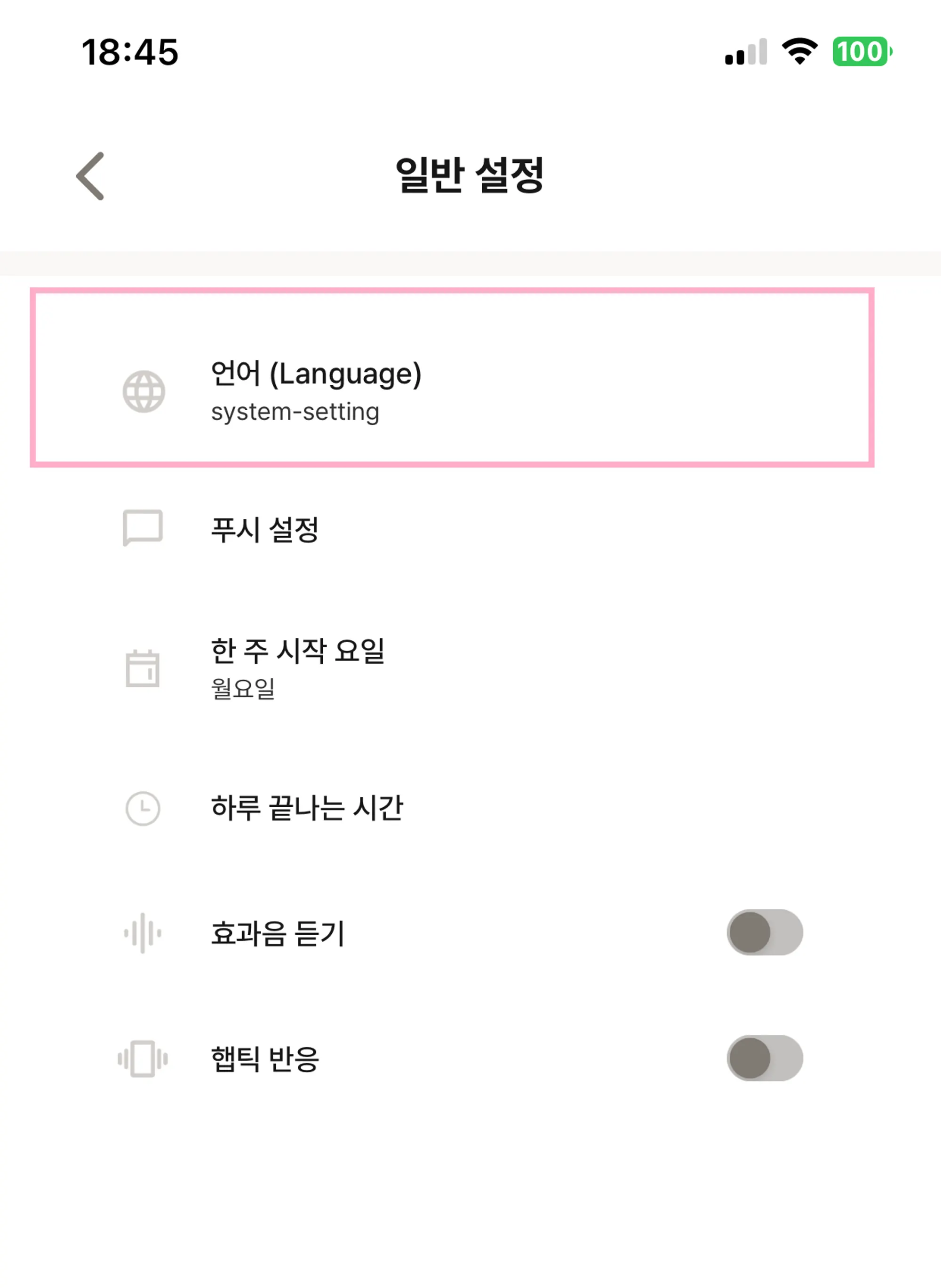 일반 설정에서 언어(Language) 메뉴를 선택해 주세요