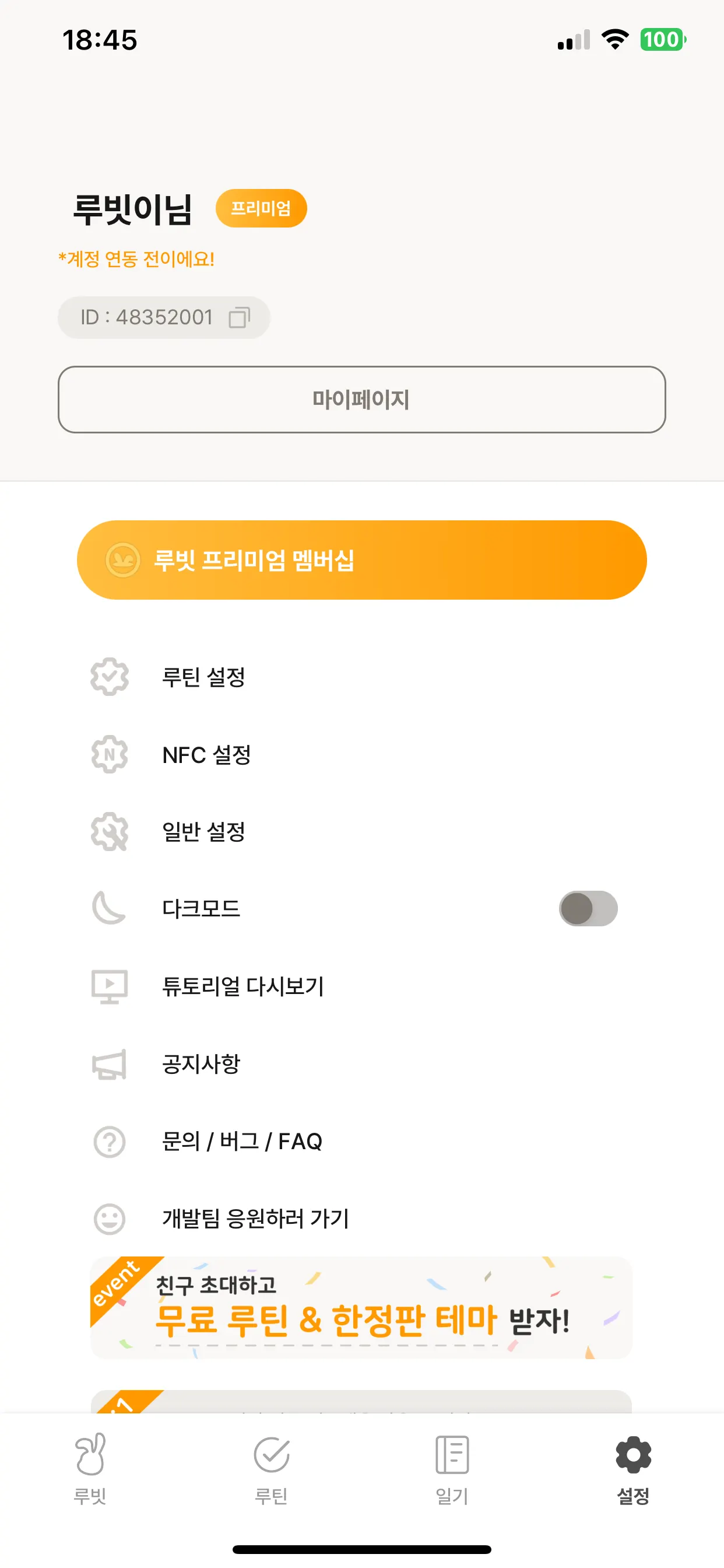 [루빗 > 설정탭 > 문의/버그/FAQ > 문의 및 버그신고]로 이동하여