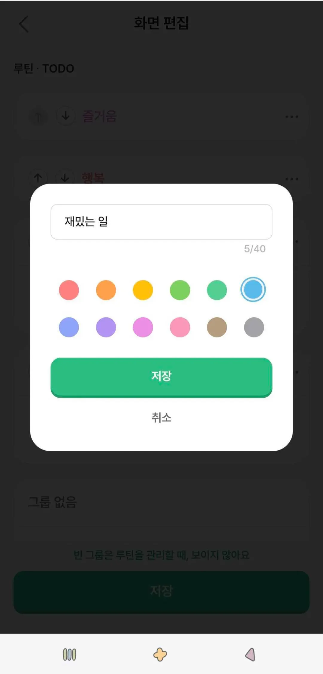 수정을 눌렀다면, 원하는 그룹 이름과 색상을 선택 후 ‘저장’을 눌러 주세요