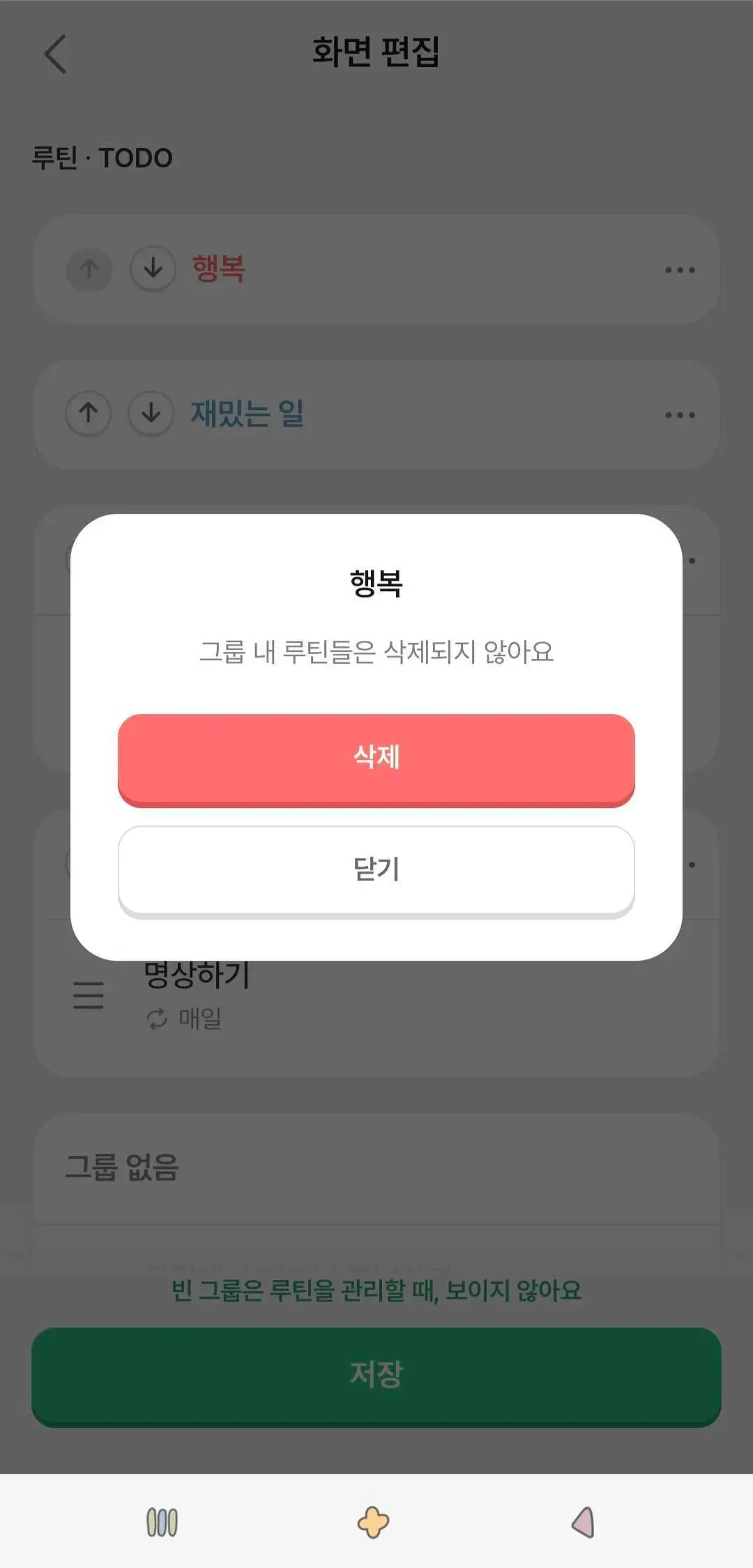 *그룹을 삭제하더라도 그룹 내 루틴과 TODO는 삭제되지 않아요