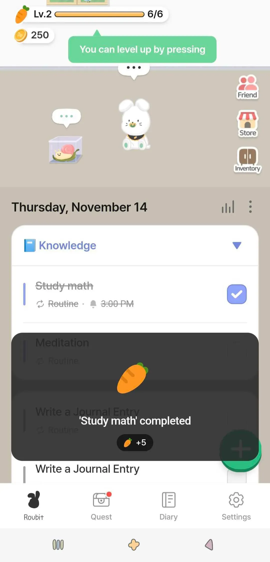 When you complete a routine once, you can randomly receive 1 to 5 carrots.