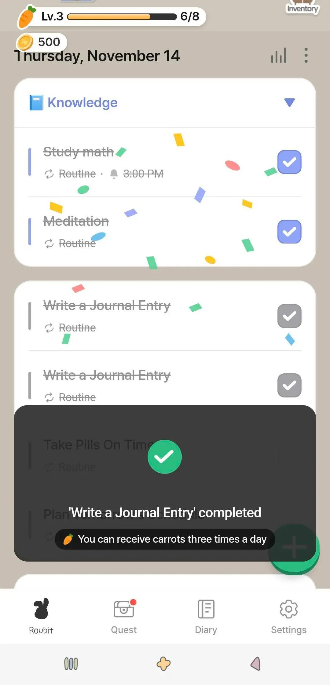 When you complete a routine, you can receive carrots up to 3 times per day!