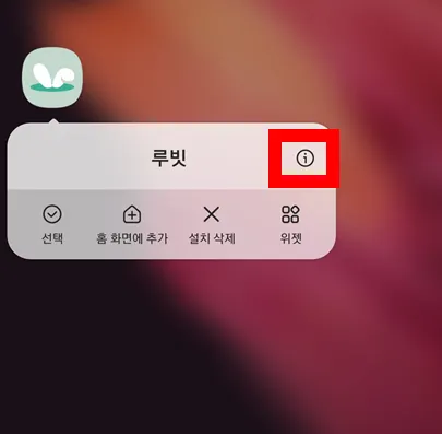 루빗 앱 아이콘 꾹 누른 다음 i 버튼 눌러 주세요
