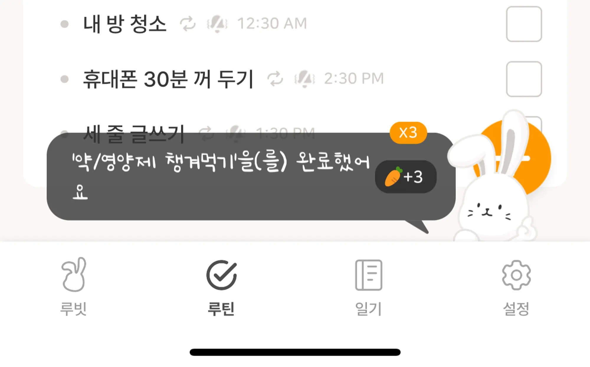 *루틴을 클릭하면 획득하는 당근의 숫자 위로 x3 표시를 확인할 수 있어요!