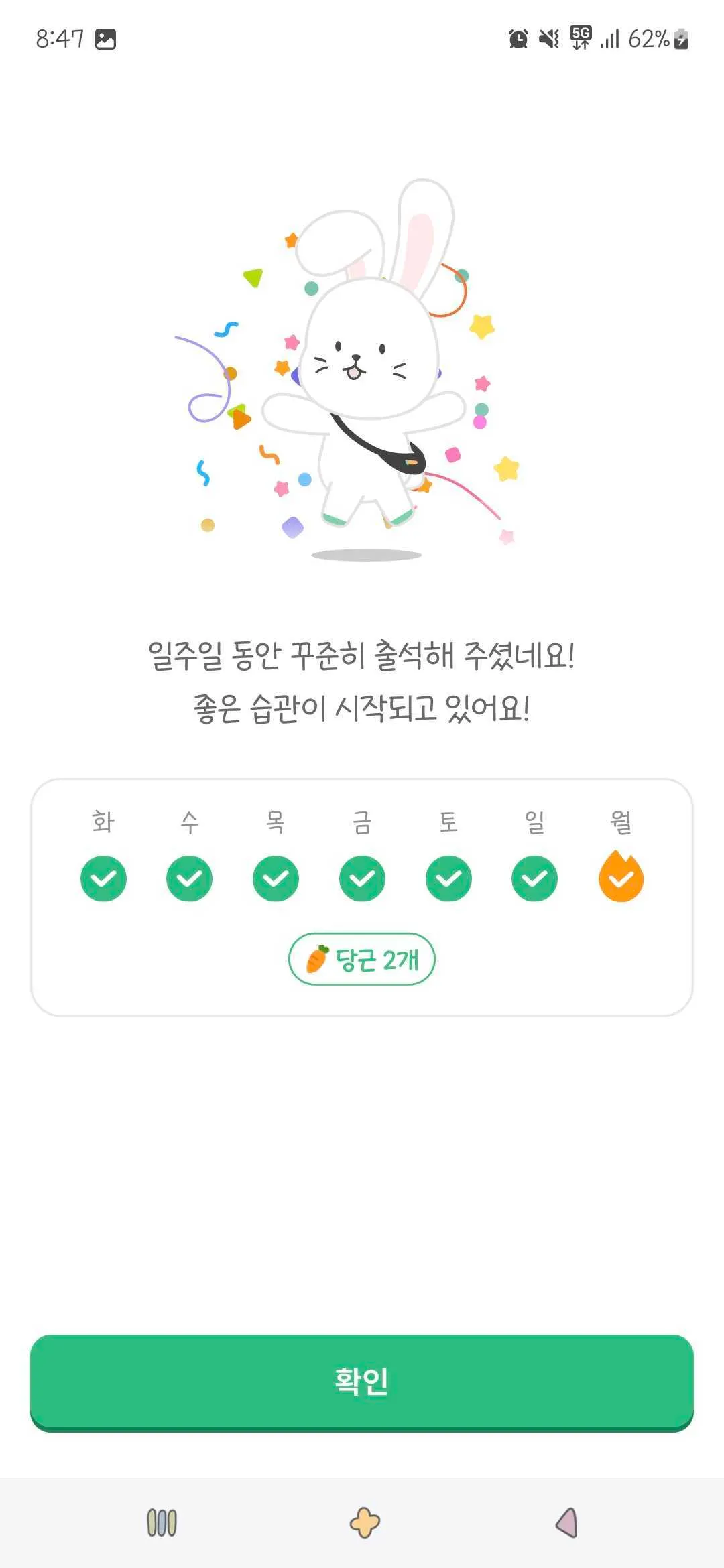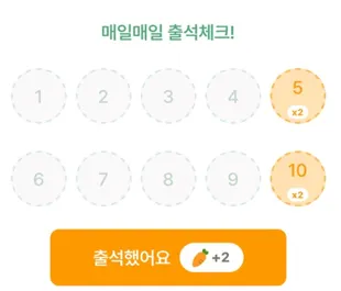 *기존 출석 보상인 당근 2개는 업데이트 후에도 매일매일 받을 수 있어요!