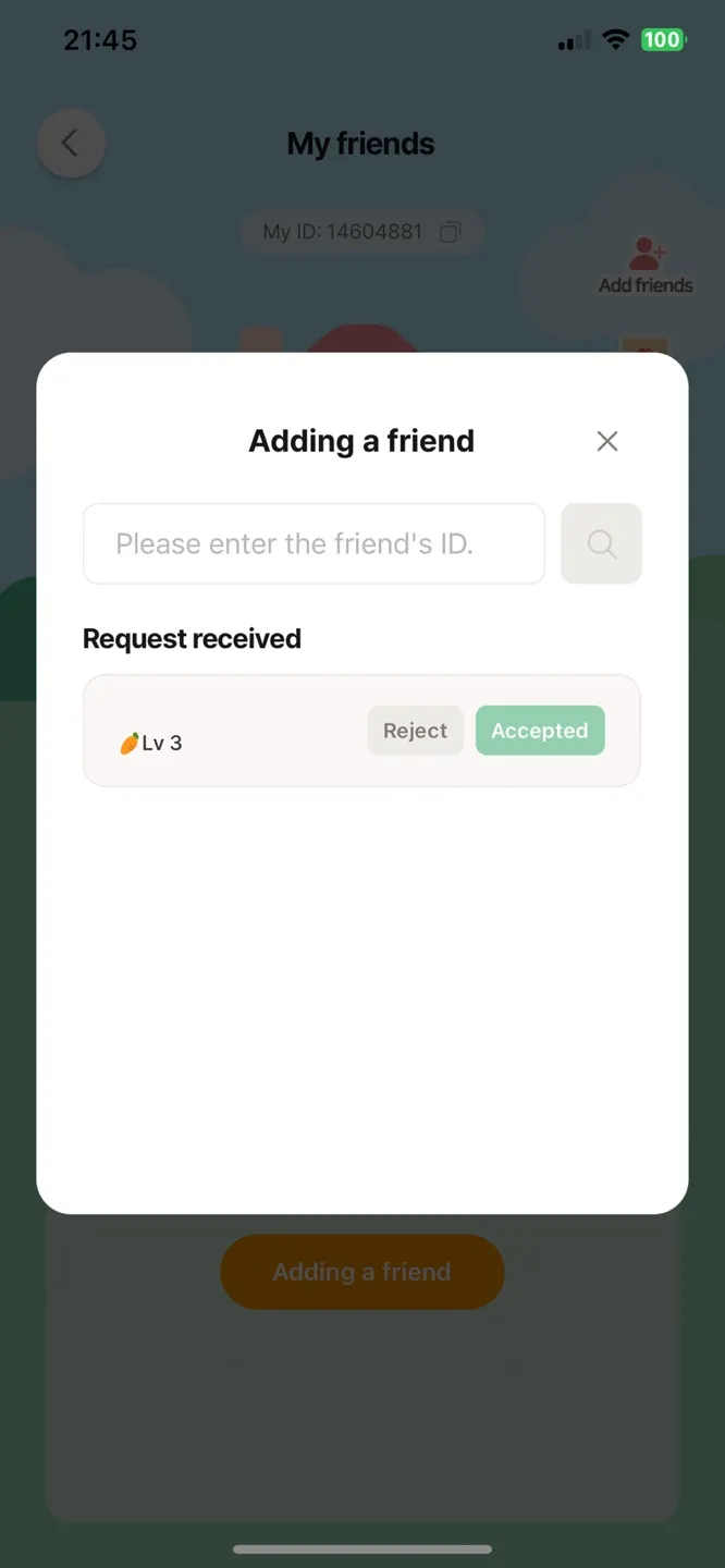 Confirm your friend's nickname and ID, then tap "Request Friend”