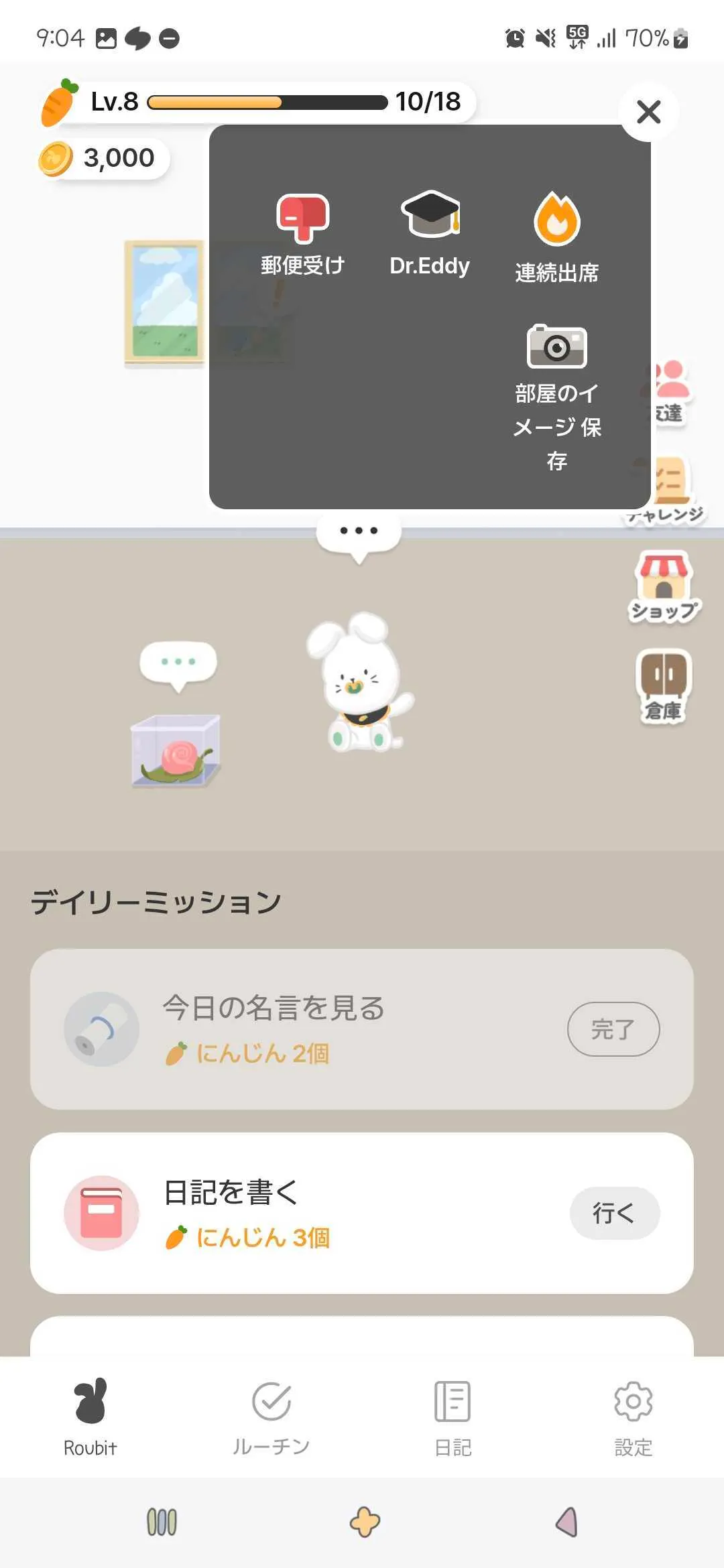 出席日数が増えると、ルビットからの特別なメッセージが表示されます!