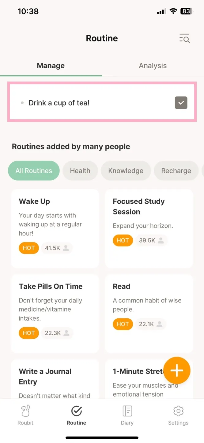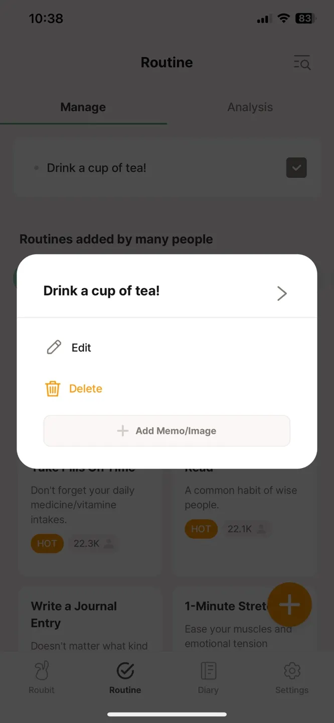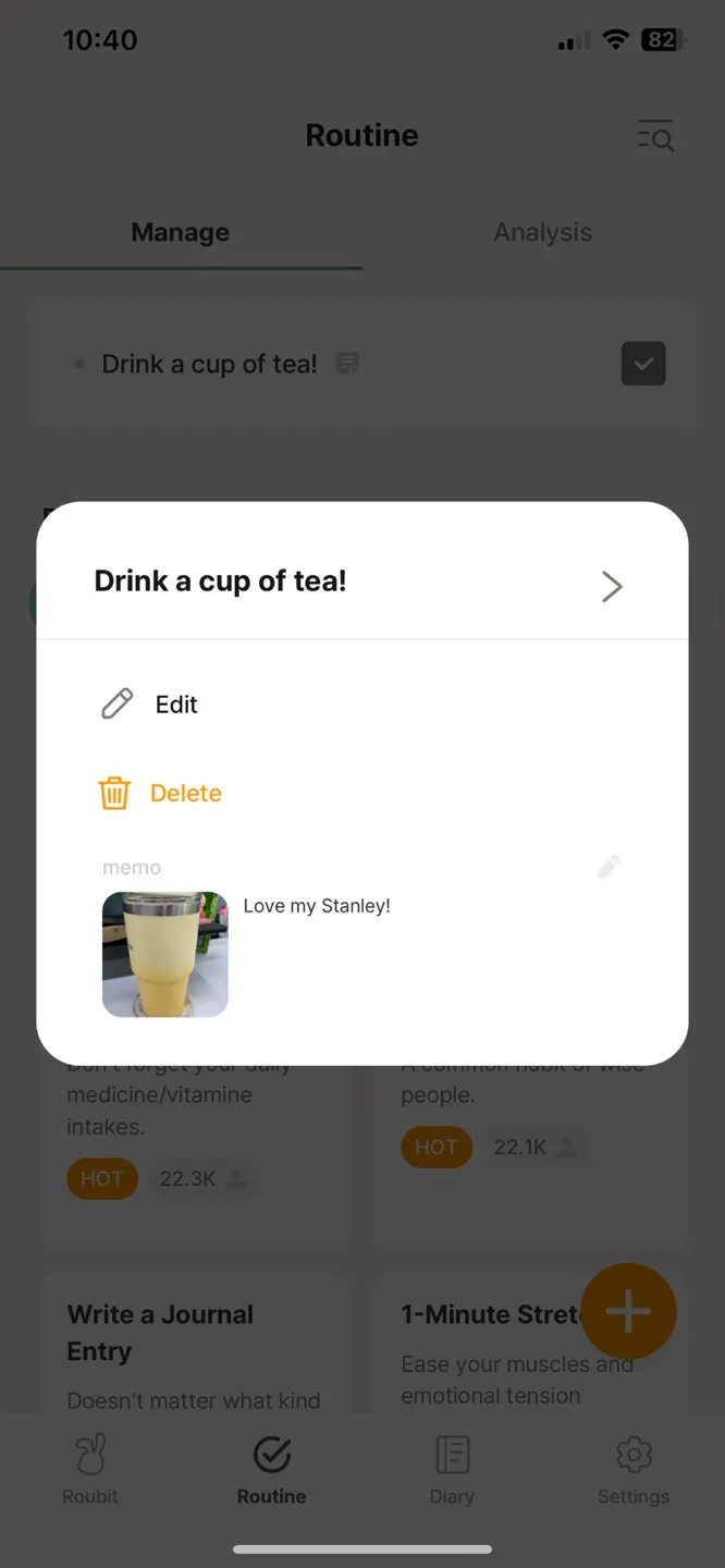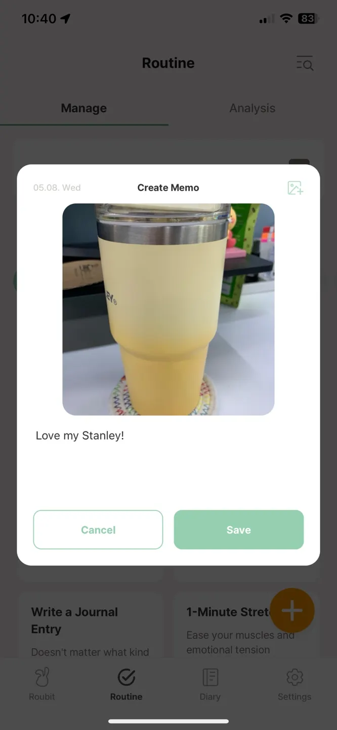 After selecting a routine, you can write a brief sentence and add a photo in "Memo"!