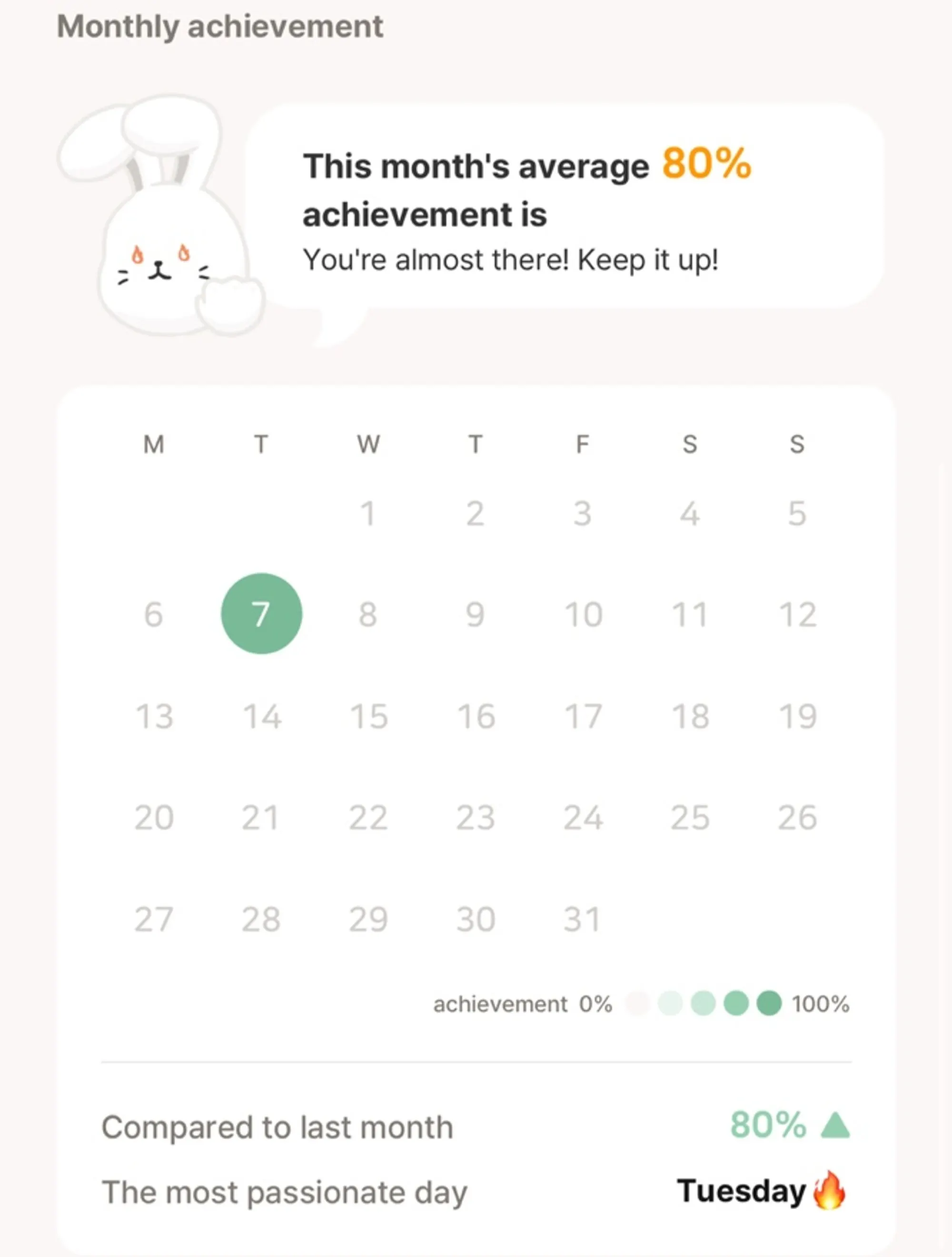 You can see the proportion of completed routines among all routines for this month in percentage.