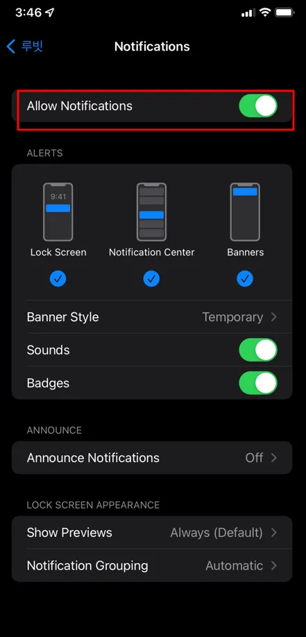 4. Allow Notifications ‘ON’