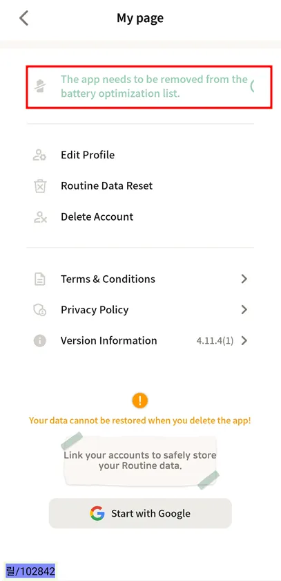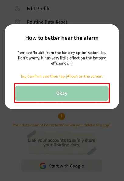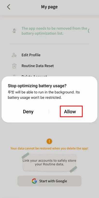 Roubit App > Setting tab > [MY] > [remove from battery optimization list] Click!