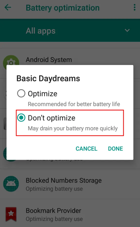 Remove from the battery optimization target