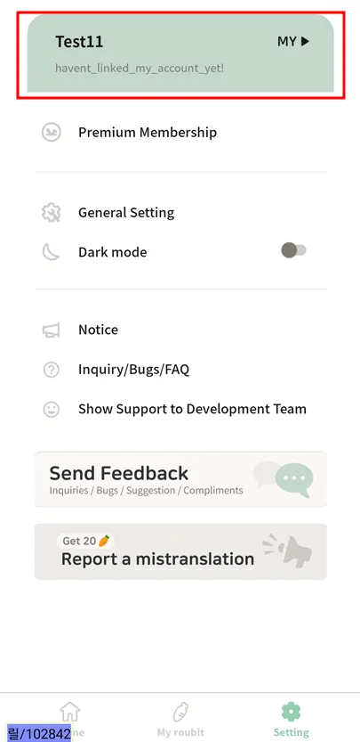 Go to [Roubit > Settings > Inquiry/Bug/FAQ > Inquiry & Report Bugs] to send bugs and inquiries from the app!