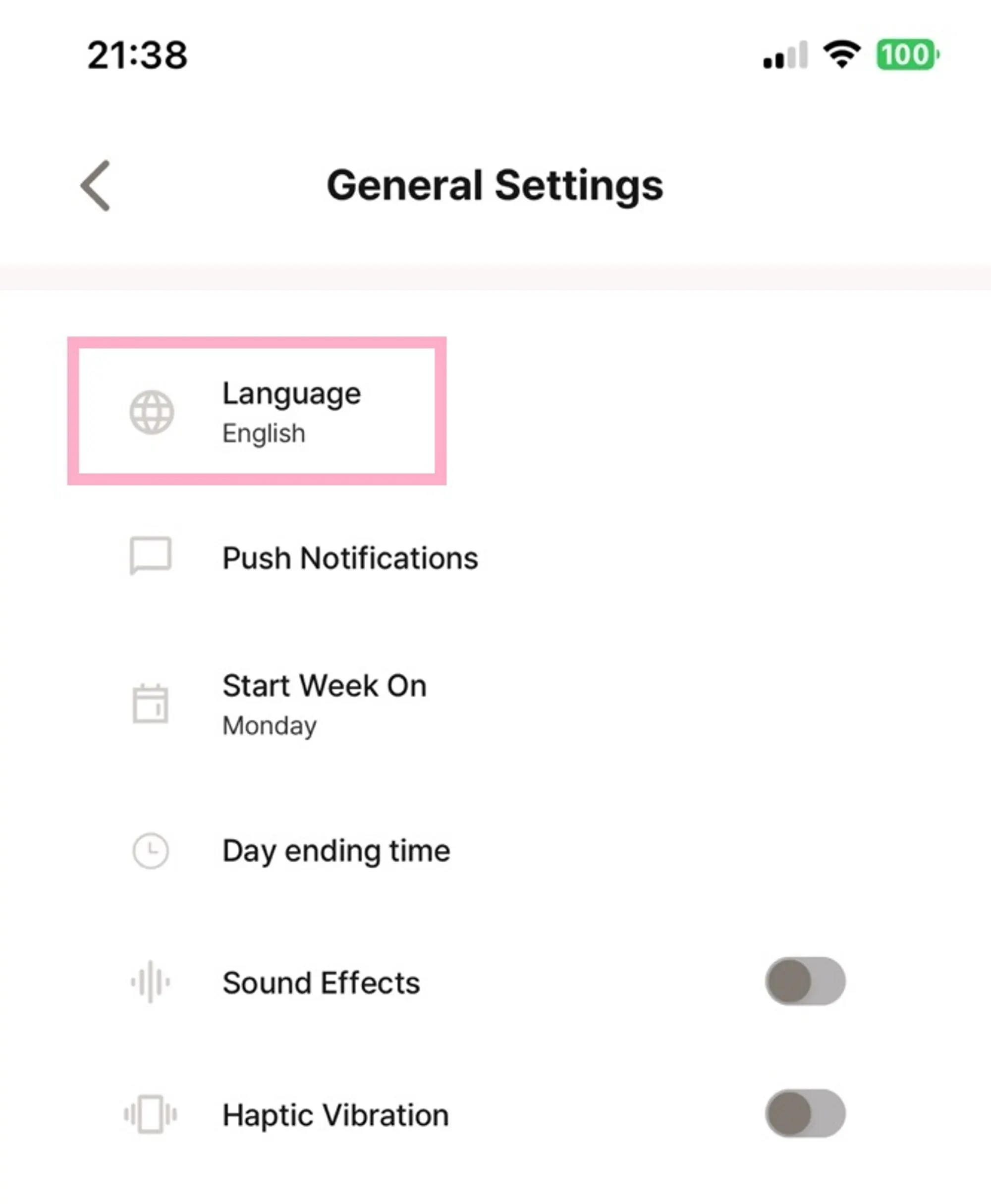Select ‘the Language menu’ in General settings