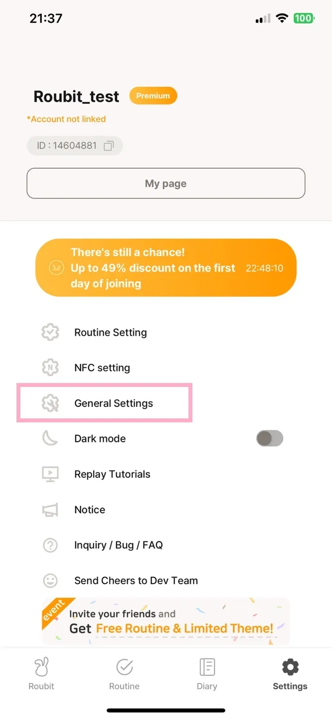 Go to [Roubit > Settings > Inquiry/Bug/FAQ > Inquiry & Report Bugs] to send bugs and inquiries from the app!