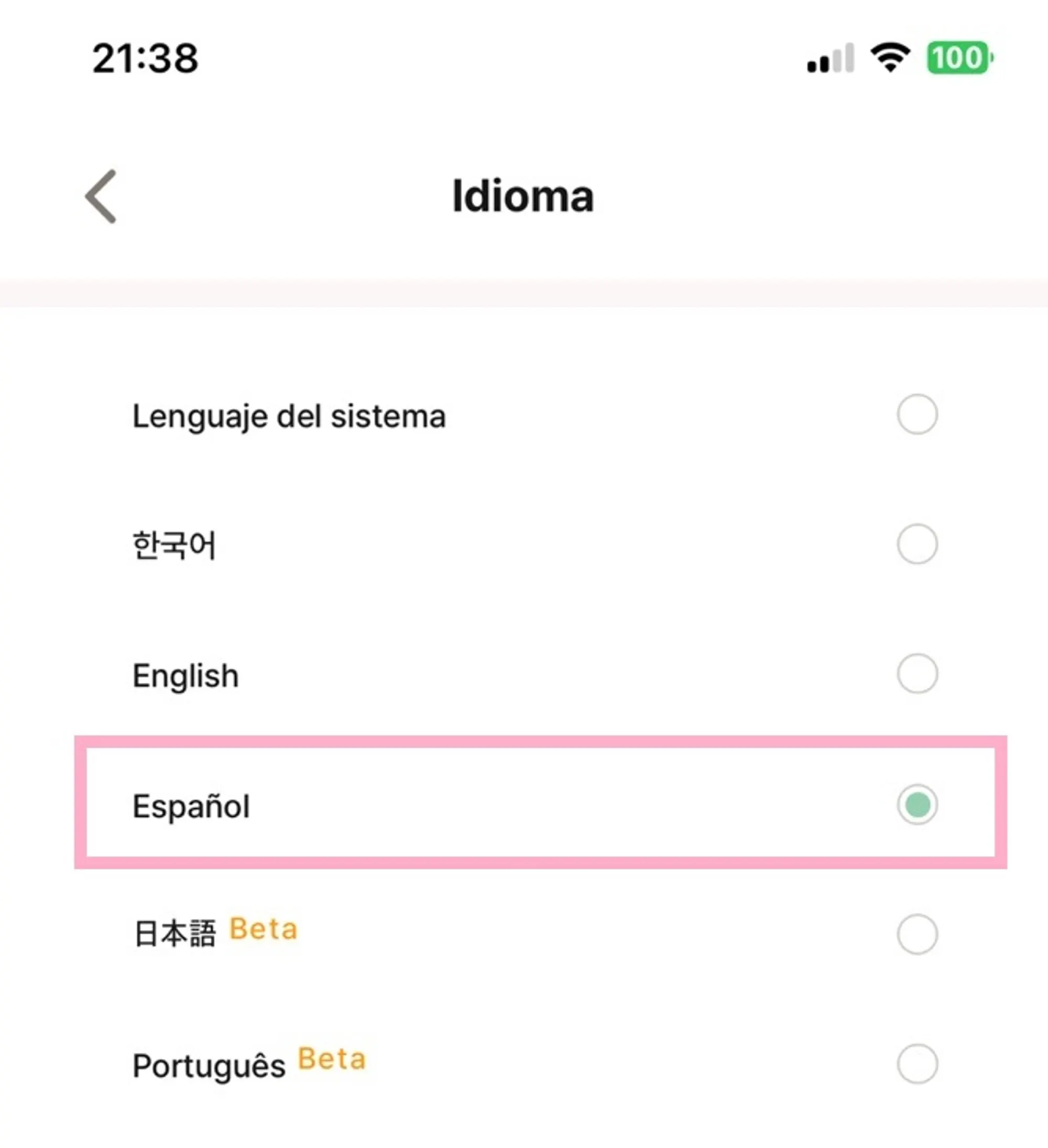 *In this example, I'll select Spanish!