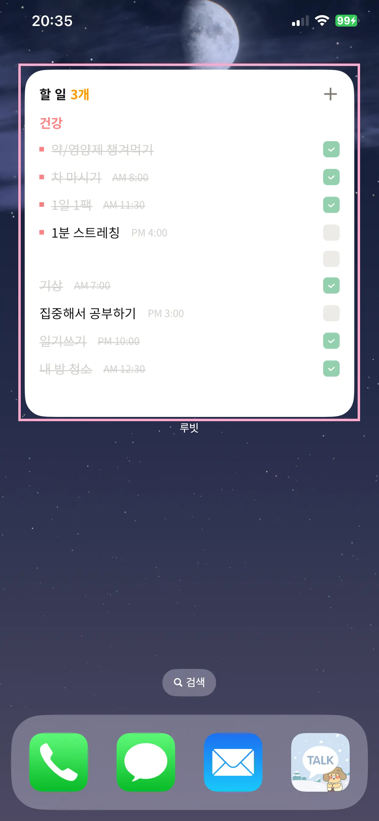 아쉽게도 위젯에서 바로 루틴 체크를 할 수는 없어요