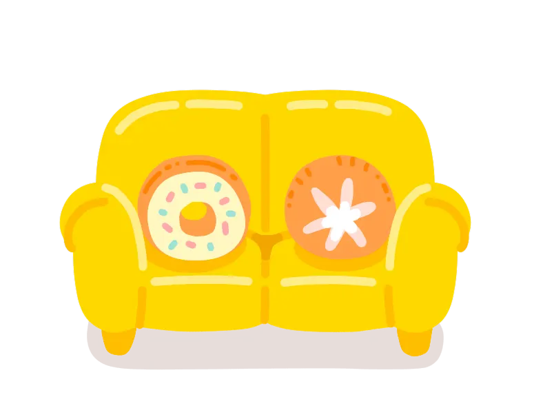 Un sofá amarillo como una rebanada de mantequilla. Suave y esponjoso, como si se estuviera derritiendo. ¡El cojín de donut es un extra!
