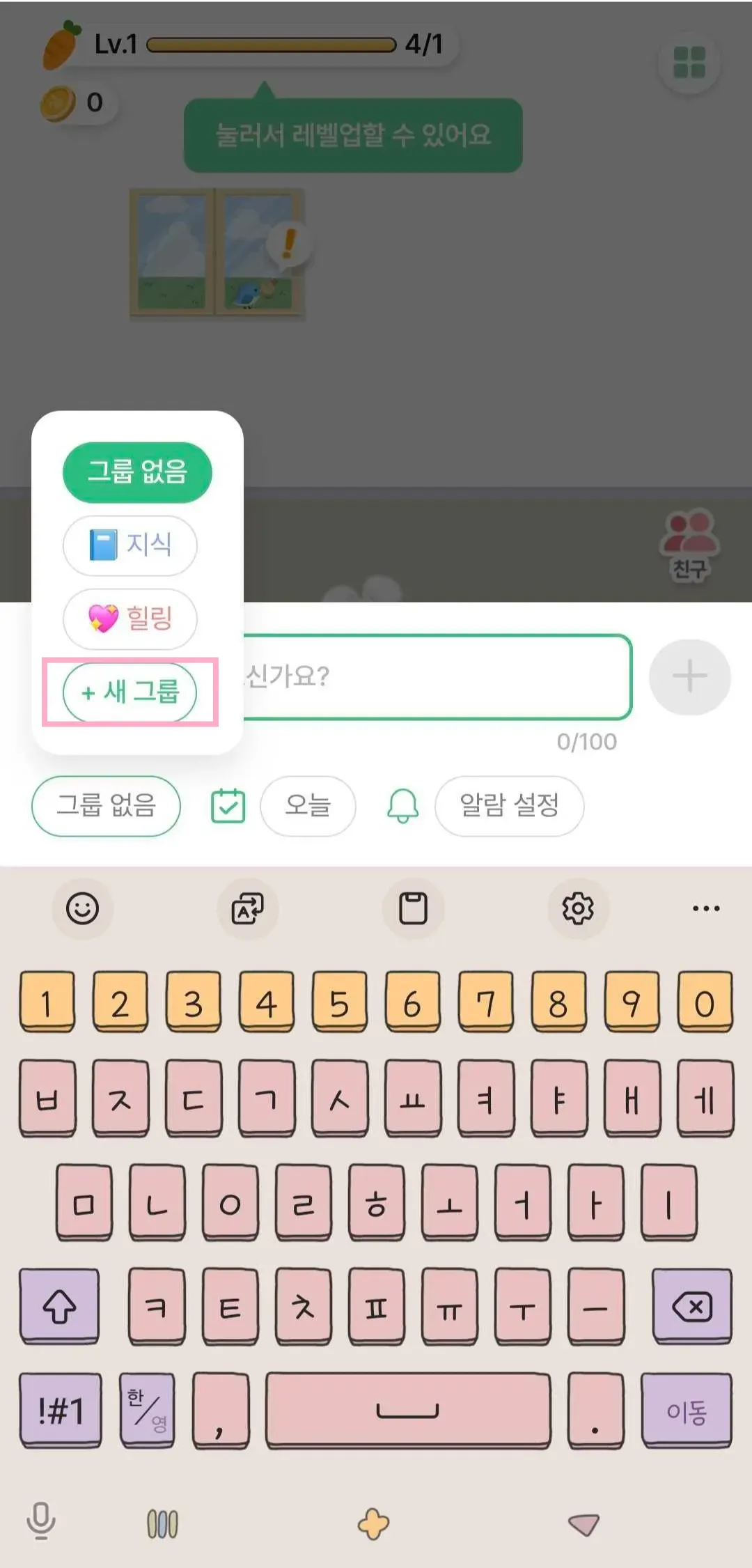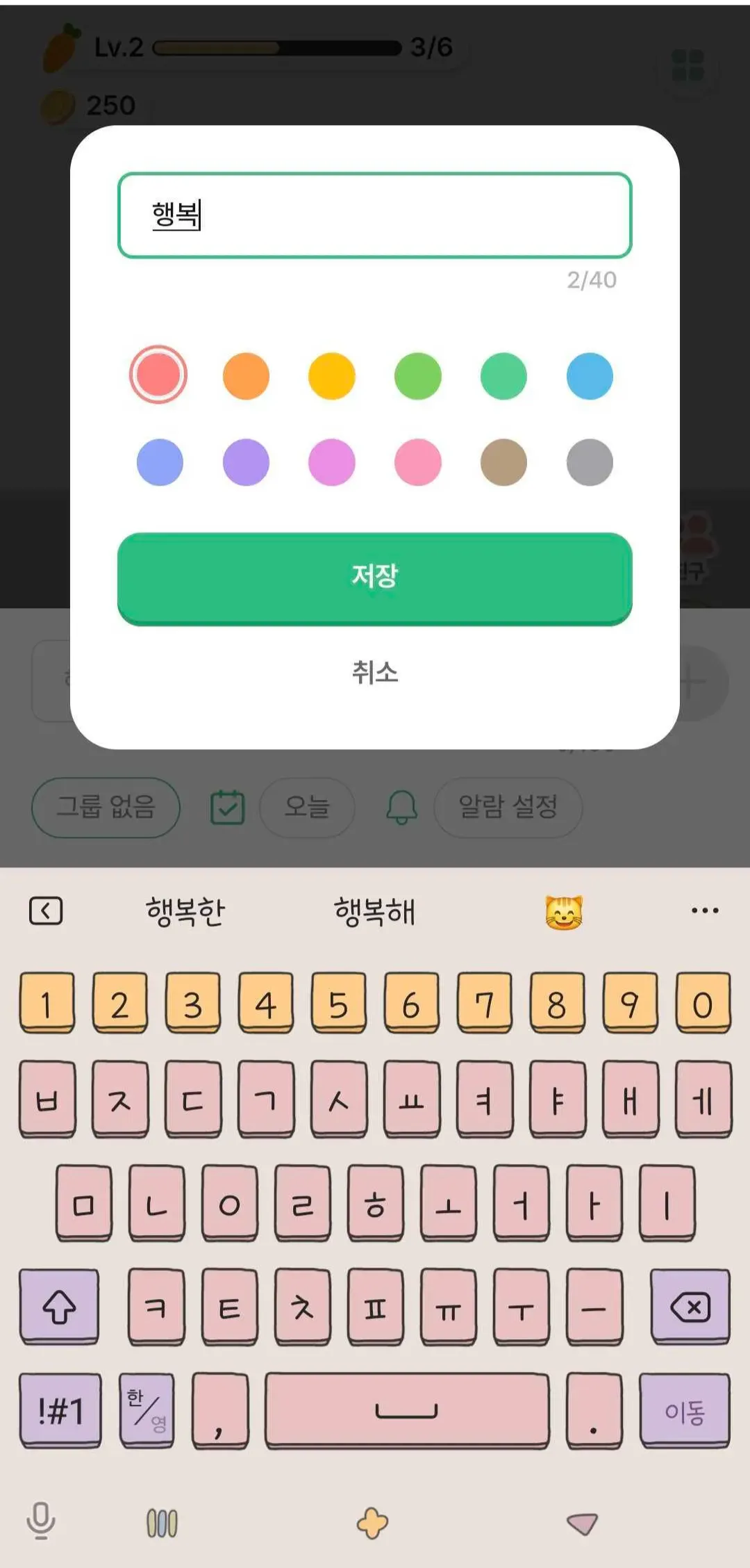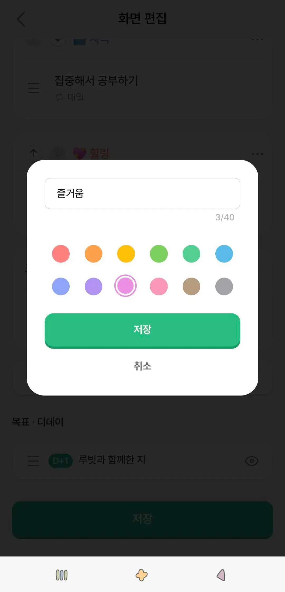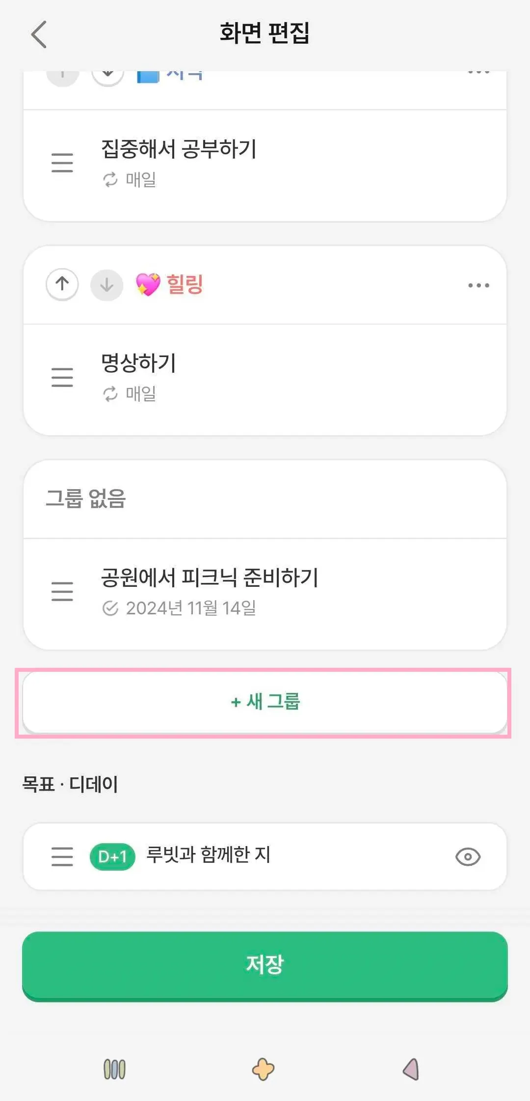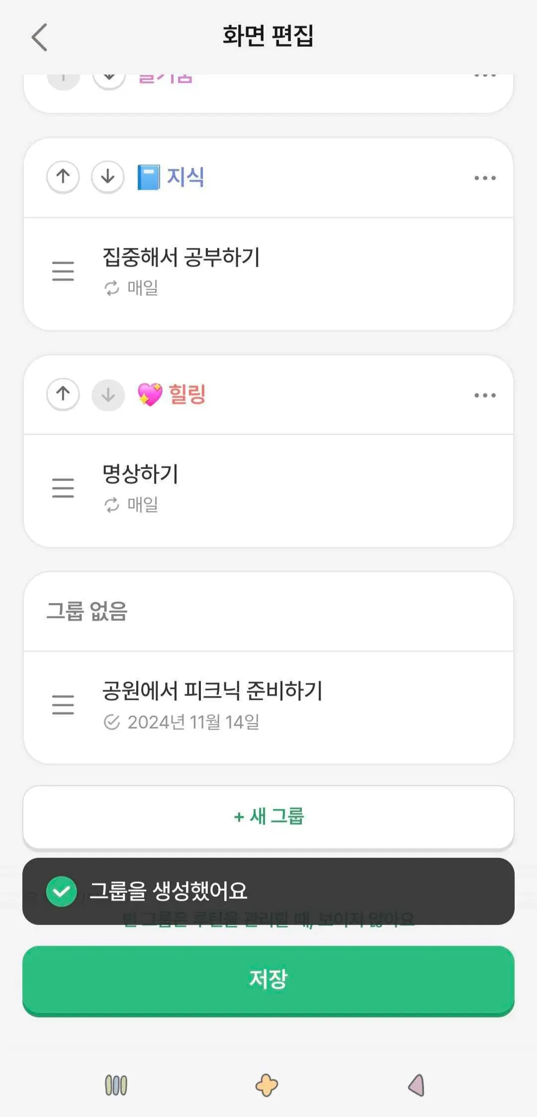 새로운 그룹의 이름과 원하는 색상을 선택 후 저장을 눌러 주세요