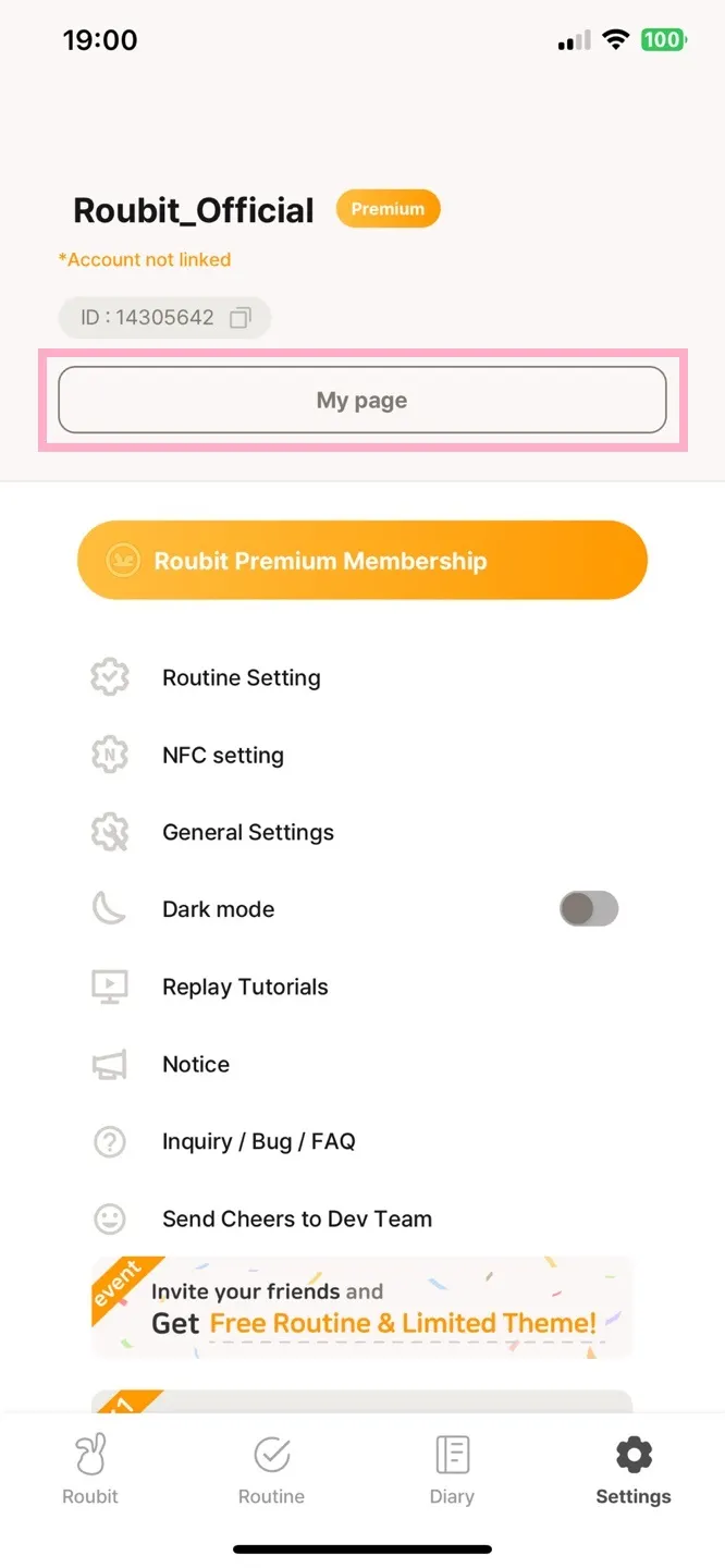 Go to [Roubit > Settings > Inquiry/Bug/FAQ > Inquiry & Report Bugs] to send bugs and inquiries from the app!