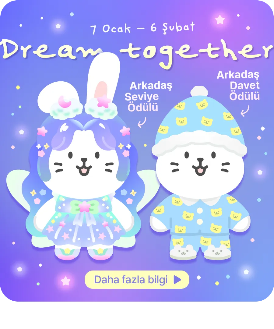 Davet ettiğiniz arkadaşlarınızdan en az birinin 'Lubbit Seviye 2'ye ulaşması gerekmektedir. | Rüya Perisi Seti (Mavi, 4 Parça) | Rüya Perisi Seti (Pembe, 4 parça) |